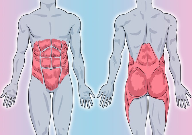 I muscoli principali del core risiedono nella zona addominale (pavimento pelvico, trasverso e retto dell’addome, diaframma,..) centrale e inferiore della schiena (multifido, quadrato dei lombi, gran dorsale,..) e dei fianchi (grande gluteo,..).