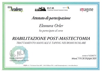 A giugno ho terminato il corso “Riabilitazione post mastectomia e taping neuromuscolare in riabilitazione oncologica e chirurgica di ricostruzione mammaria” a Milano.